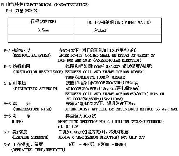 | 電壓: | DC12V | 行程: | 3.5MM | 電阻: | 40歐 | 功率: | 3.6W |